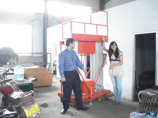 印度客戶來我公司選購鋁合金升降機http://m.wangjinchaoshi.cn/